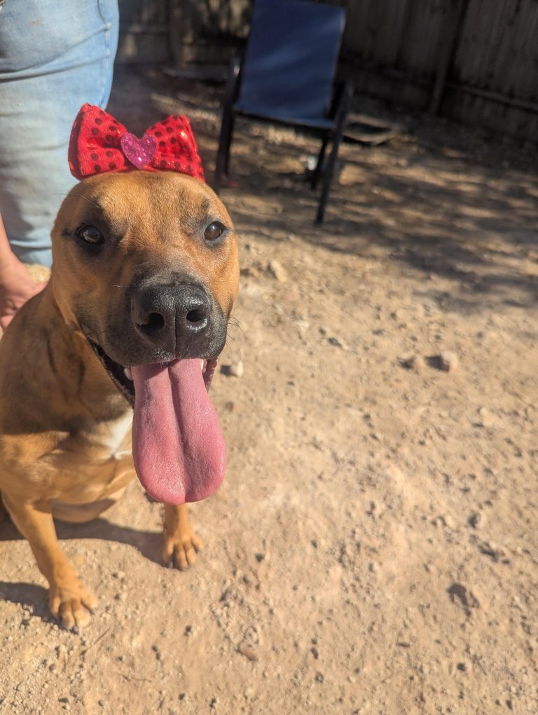 Phoebe is good with dogs, cats, and kids. She would happiest with an active family and needs a secure yard with a 6 ft fence.
