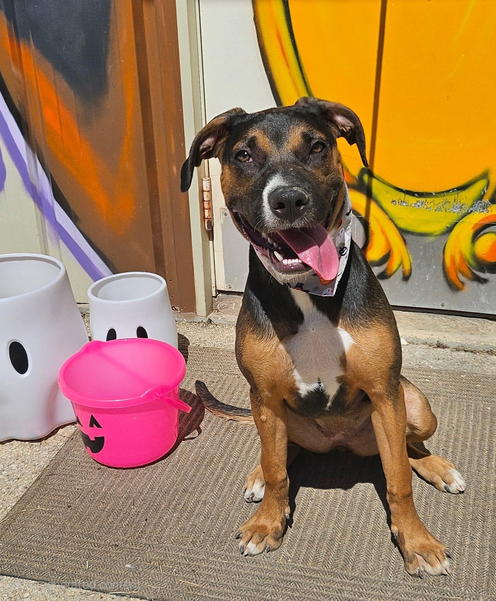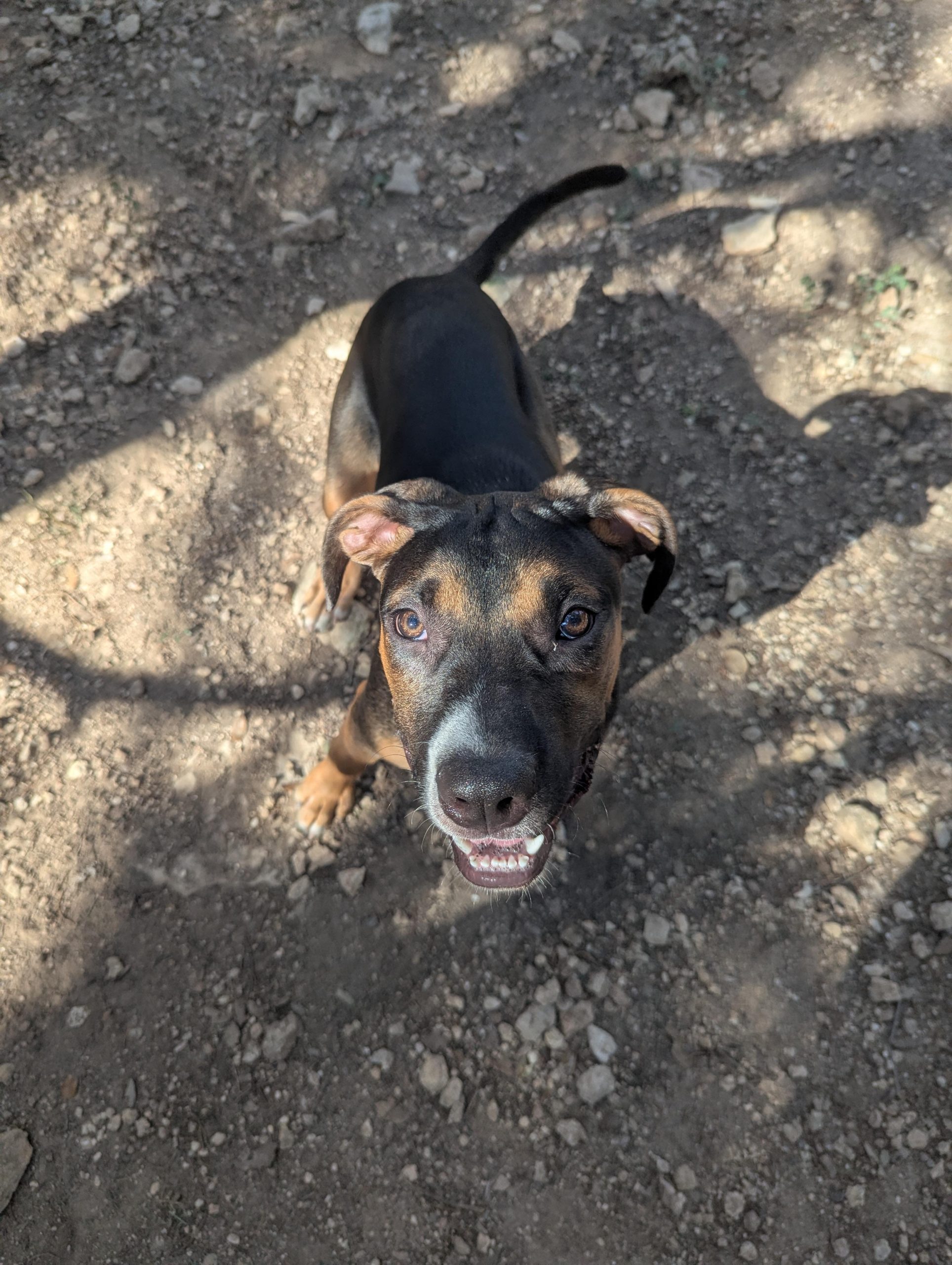 Rachel and her four siblings came to us after being picked up by a good Samaritan. The litter was trying to cross 1431 during a thunderstorm! All puppies were brought safely to the shelter and have been learning doggy basics ever since. Training and resources are available for free after adoption!